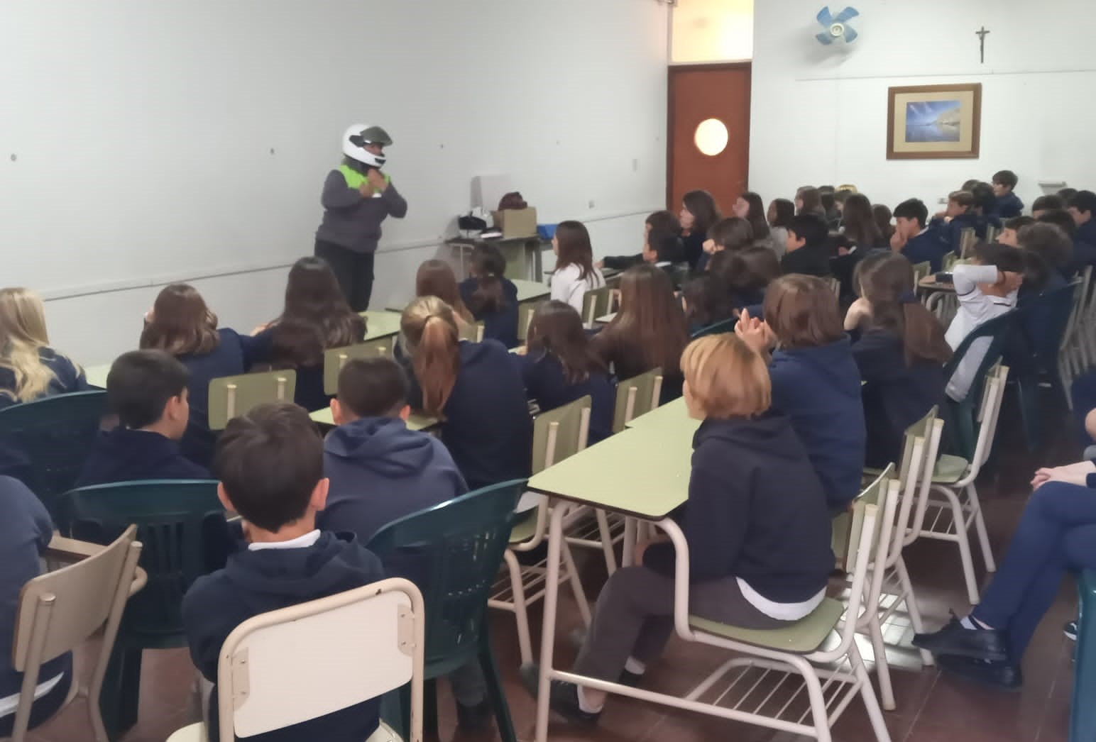 La subsecretaría de Seguridad y Tránsito de la Municipalidad de Nueve de Julio continúa dictando jornadas de Educación Vial para alumnos de primer y segundo ciclo, dónde se abordan temas como el uso del casco, normas elementales en automóviles, medidas preventivas reglamentarias que establece la ley Nacional de tránsito 24449 y otras temáticas del ámbito de la seguridad vial, en esta oportunidad, para alumnos de 4to. y 5to año del Colegio Jesús Sacramentado.