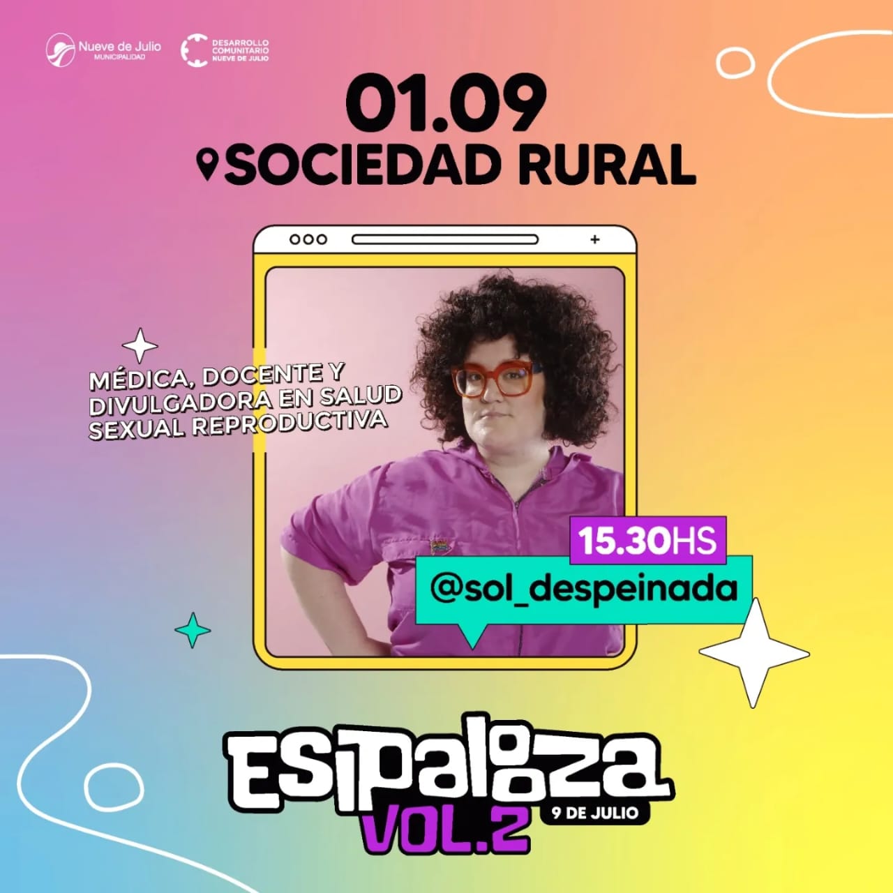 La Municipalidad de Nueve de Julio, a través de la secretaría de Desarrollo Comunitario, llevará adelante el “ESIPALOOZA Vol.2” festival de ESI (Educación Sexual Integral), enmarcado en la Ley 26.150, en el cual se abordará a través de stands, juegos, muestras, espectáculos y charlas los diversos ejes y contenidos de la ley.