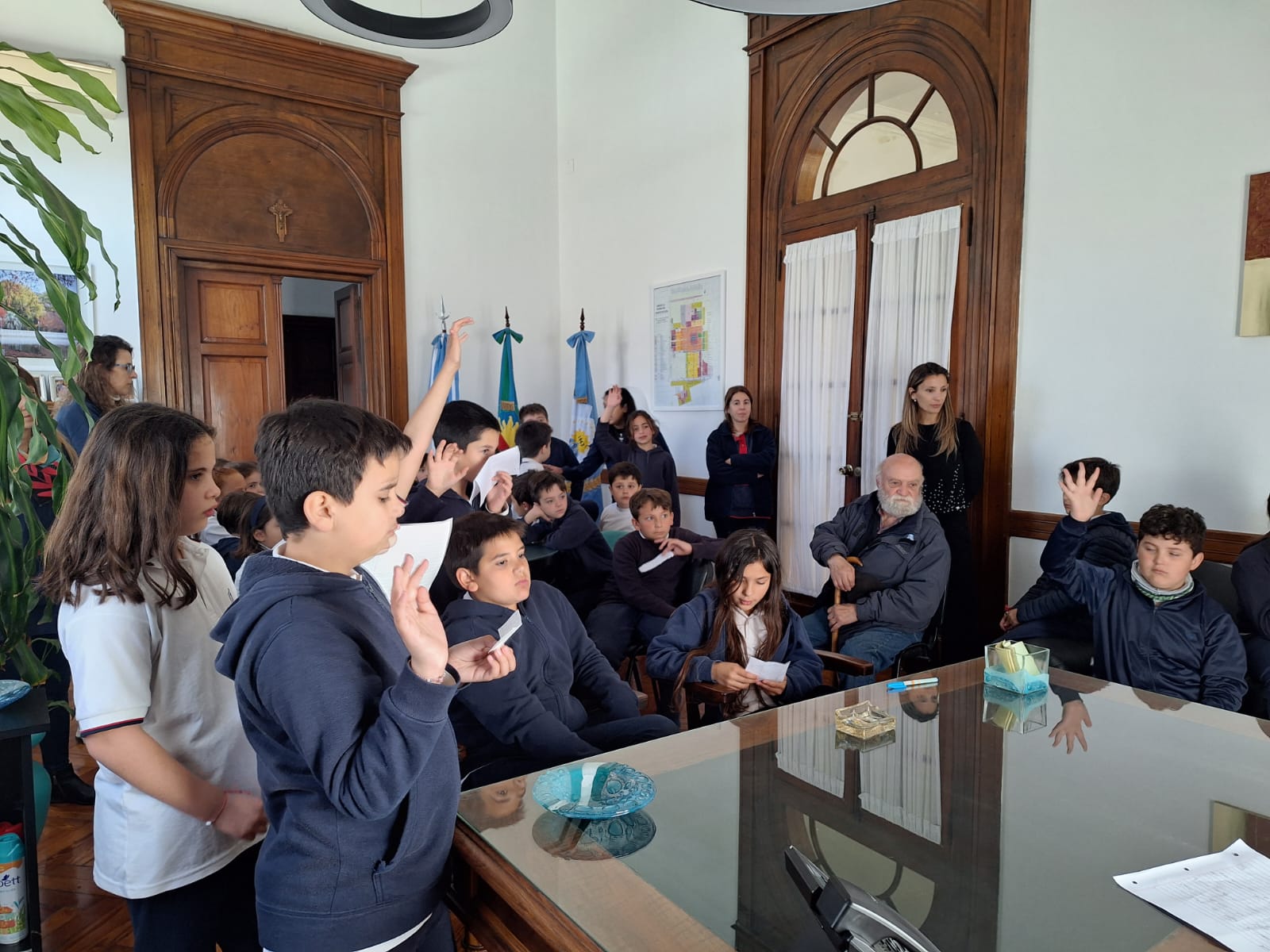 En la mañana de hoy, alumnos de 4to. grado del Colegio Jesús Sacramentado, acompañados de docentes y directivos del establecimiento, realizaron una visita al Palacio Municipal.