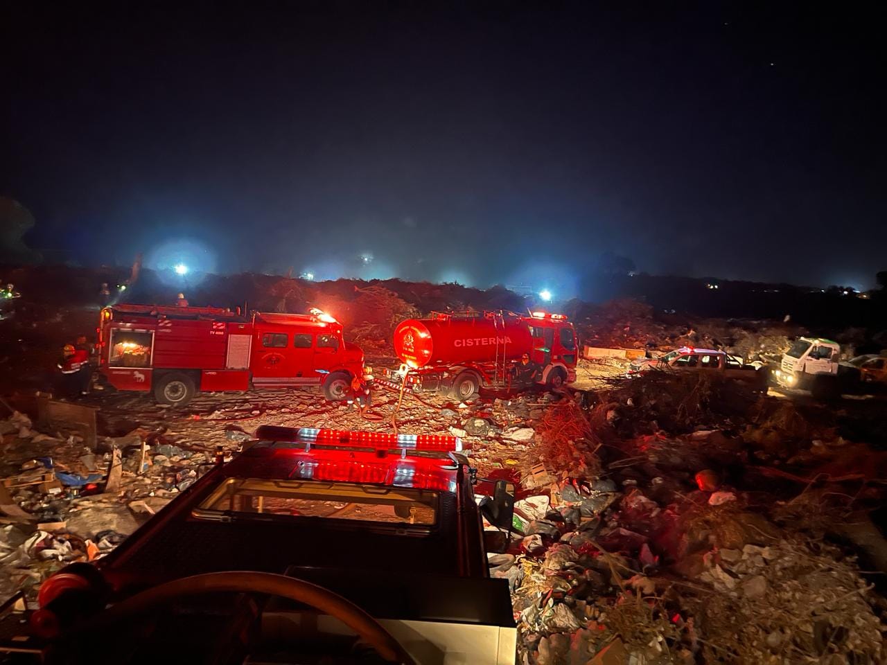 Ardua labor de las fuerzas de seguridad en el incendio en el basural