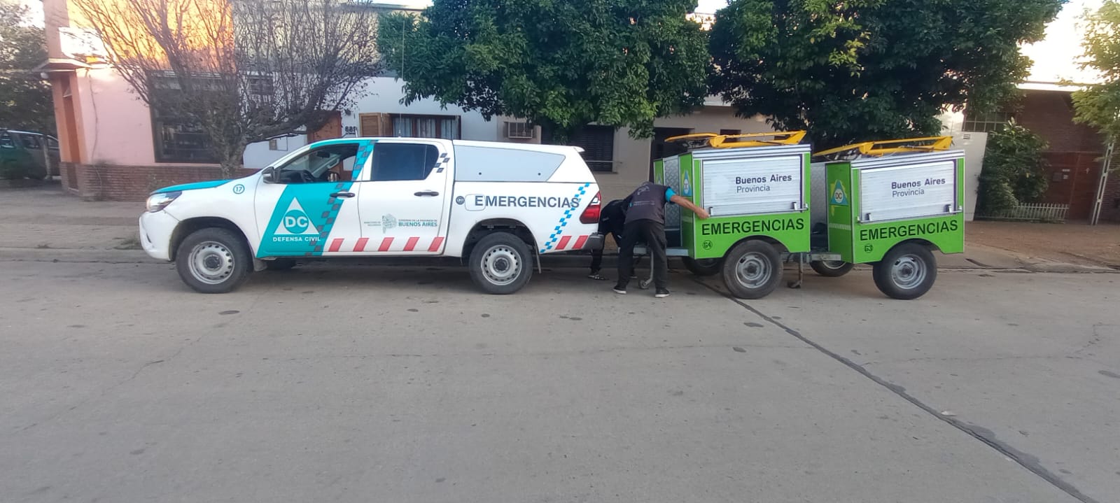 La Dirección General de Defensa Civil de la Provincia de Buenos Aires, perteneciente a la subsecretaría de Emergencias, envió a nuestra ciudad camionetas y equipos de transferencia para brindar electricidad en zonas afectadas.