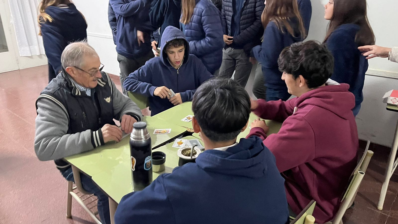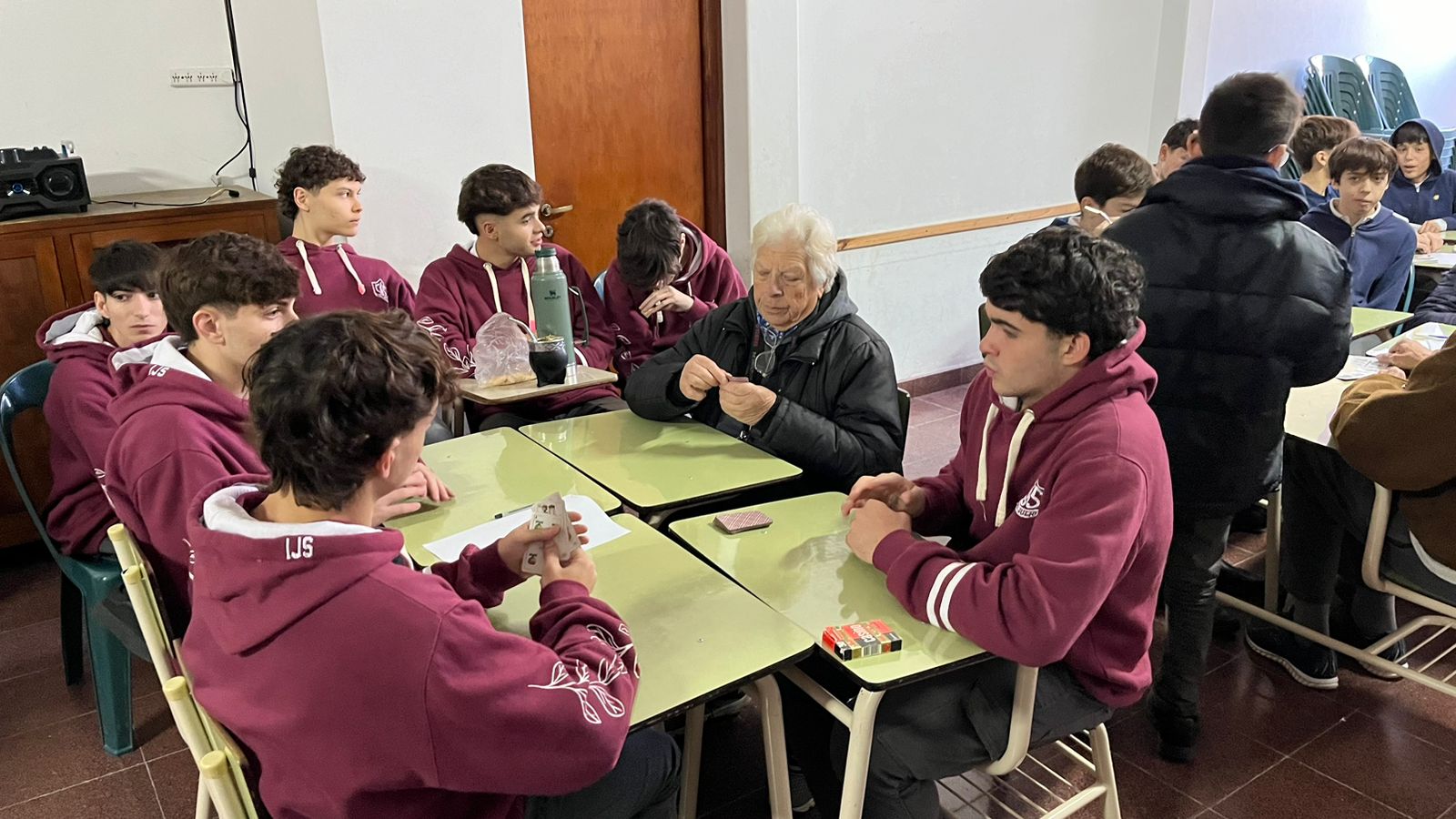 24/5/24. Desde la dirección de Adultos Mayores, dependiente de la Secretaría de Desarrollo Comunitario de la Municipalidad de Nueve de Julio, esta mañana, en las instalaciones del Colegio Jesús Sacramentando (CJS), y en el marco del acto en conmemoración por el 25 de Mayo, se compartieron juegos en los que participaron alumnos de la institución y adultos mayores, como una manera de compartir experiencias entre generaciones, fomentar los vínculos y la participación en la comunidad.