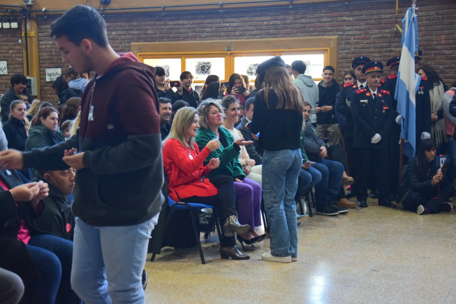 La mandataria estuvo acompañada en la oportunidad por funcionarios de su Gabinete, autoridades educativas encabezadas por la Jefa Distrital, Gabriela Tiani, autoridades del HCD, representantes de instituciones y fuerzas de seguridad y delegaciones escolares.