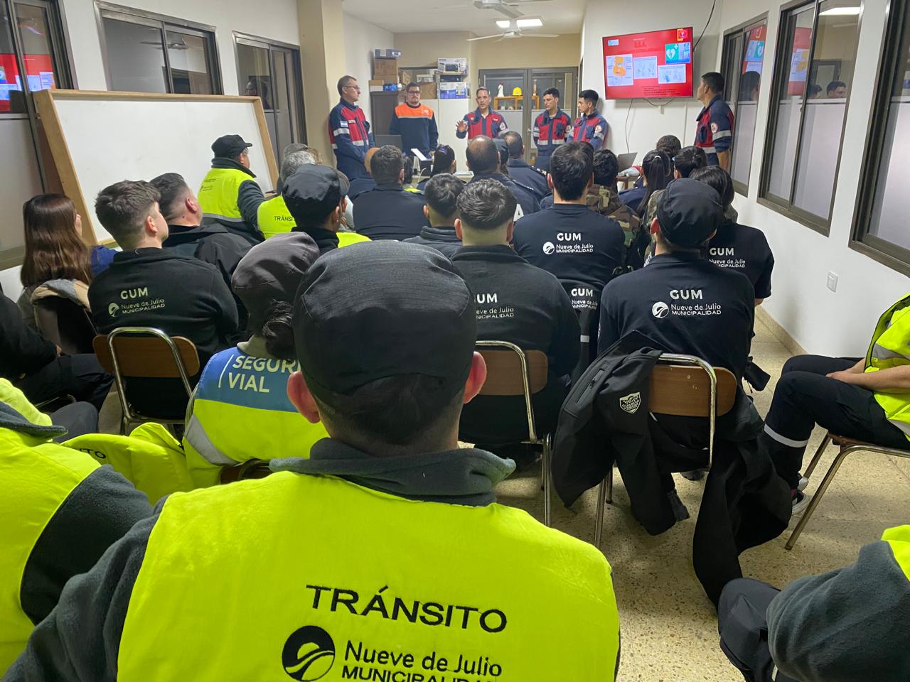 En la noche de ayer, jueves 29, en las instalaciones de la Asociación de Bomberos Voluntarios de 9 de Julio, la dirección de Defensa Civil de la Municipalidad de Nueve de Julio, a través de personal de esta entidad, dictó una importante capacitación en RCP (Reanimación Cardiopulmonar) para personal de la Guardia Urbana Municipal (GUM), Tránsito, Policía Comunal, Policía Vial y Comisaría de la Mujer.