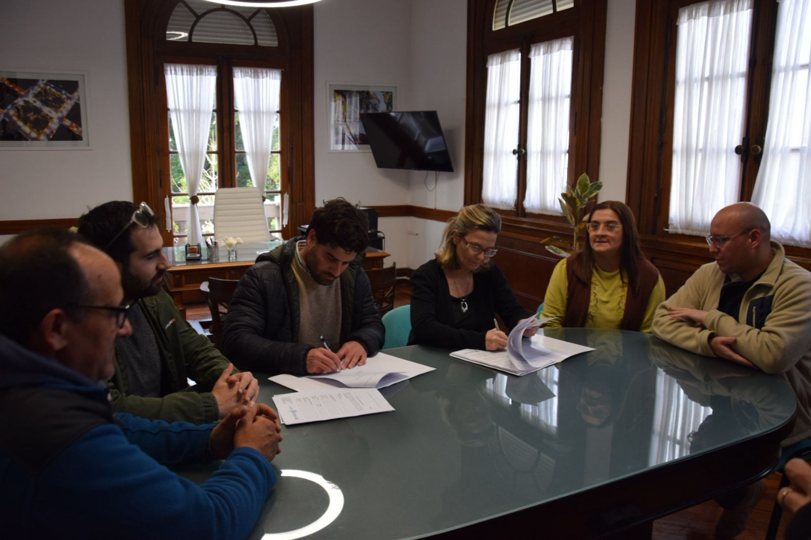 En la tarde de ayer, la Intendente Municipal de Nueve de Julio, María José Gentile, acompañada de funcionarios de su Gabinete, procedió a suscribir un importante convenio con el Ministerio de Desarrollo Agrario de la provincia de Buenos Aires, representado en la oportunidad por Cristian Amarilla, subsecretario de Desarrollo Agrario y Calidad Agroalimentaria; el que permitirá efectuar mejoras en el acceso a la localidad de Carlos María Naón, con una inversión superior a los 40 millones de pesos. También estuvo presente la delegada de la mencionada localidad, Andrea Maccagnani.