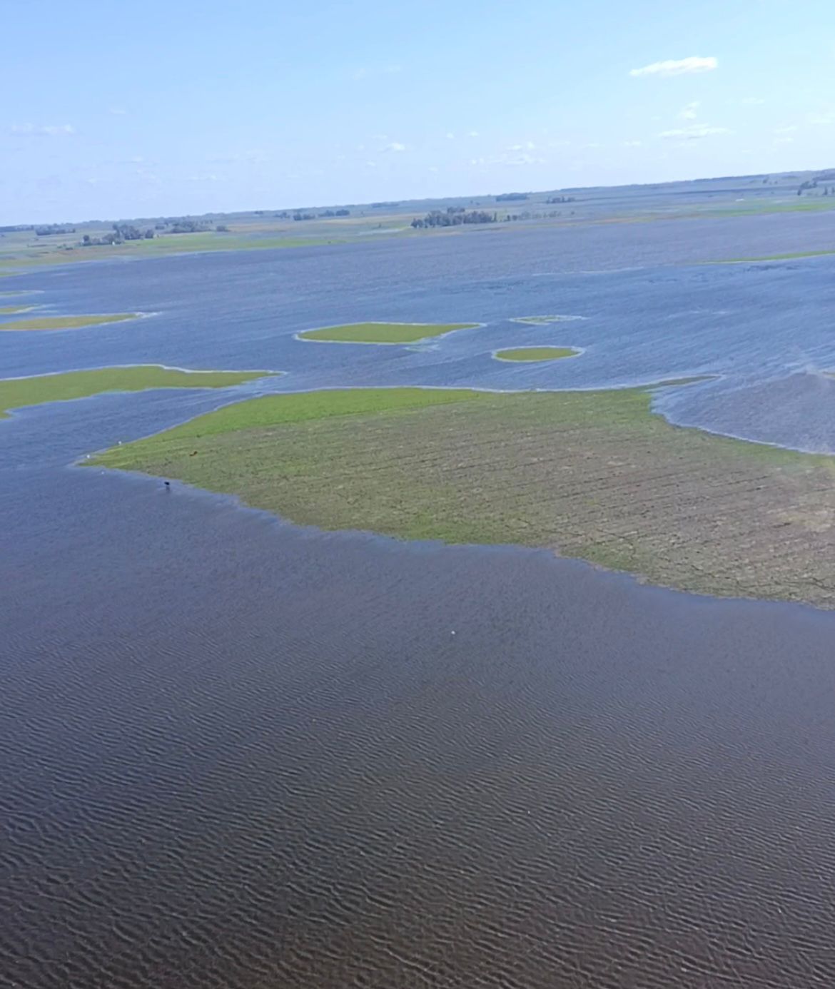 Desde el aire, pudieron dimensionar la magnitud de la inundación: zonas donde no existían lagunas ahora aparecen completamente cubiertas por agua.