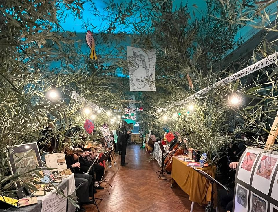 Al ingresar, los asistentes encontraron a la Alondra pequeña pintando, a la orquesta en acción, las obras de la artista y, al final del recorrido, a la Alondra en tiempo presente, desplegando su creatividad; en una propuesta sensorial muy original y acompañada por una excelente concurrencia.