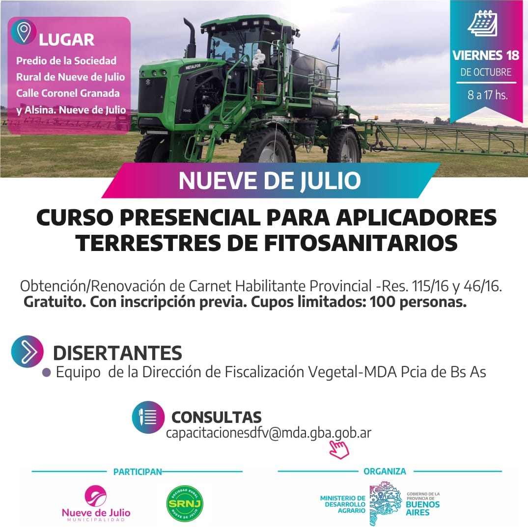 17/10/24. CURSO PRESENCIAL GRATUITO PARA APLICADORES TERRESTRES DE FITOSANITARIOS