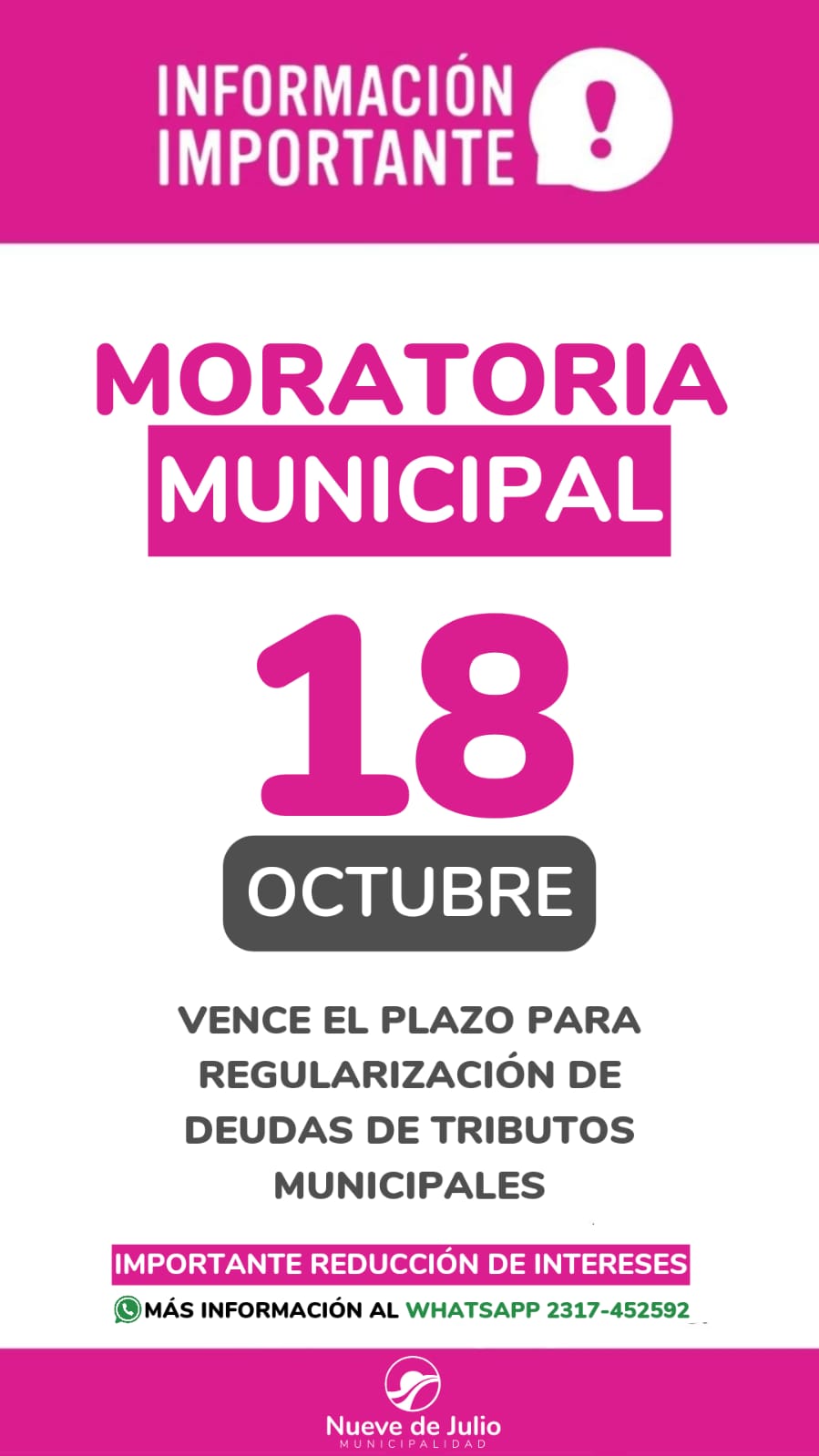 17/10/24. VENCE EL DE PLAN DE REGULARIZACIÓN DE DEUDAS DE TRIBUTOS MUNICIPALES