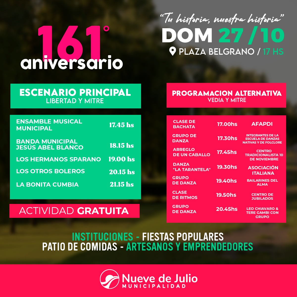 22/10/24. TIENE SU PROGRAMA LA CELEBRACIÓN DEL 161 ANIVERSARIO DE LA CIUDAD